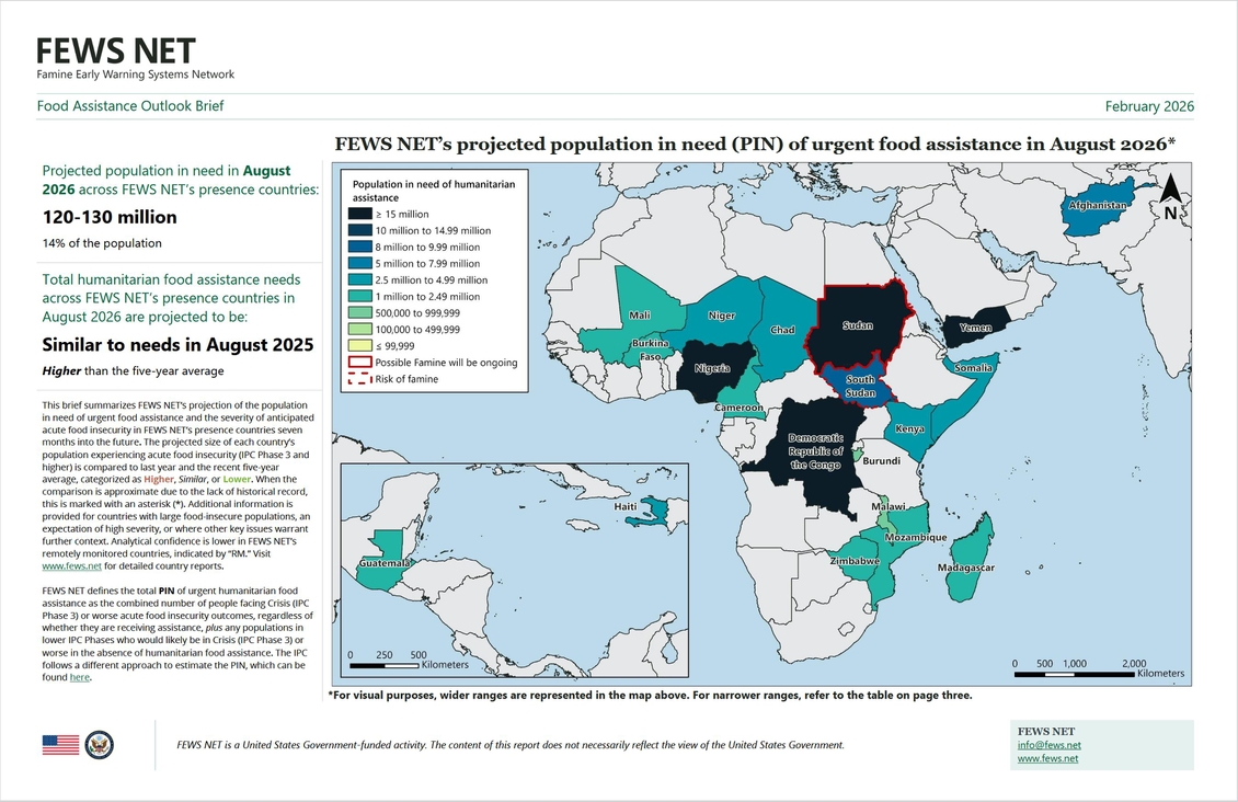 (di seguito un estratto della sola prime 1° pagina, come breve anteprima, del documento in questione liberamente visualizzabile/scaricabile alla pagina web --> https://fews.net/global/food-assistance-outlook-brief/february-2026/print)